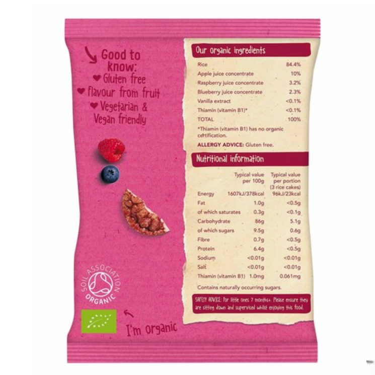 These summery, fruity rice cakes are designed with little ones in mind soft, safe, and made with simple organic ingredients. Each bite melts easily and delivers a gentle burst of real fruit flavour, perfect for tiny taste buds exploring new textures.