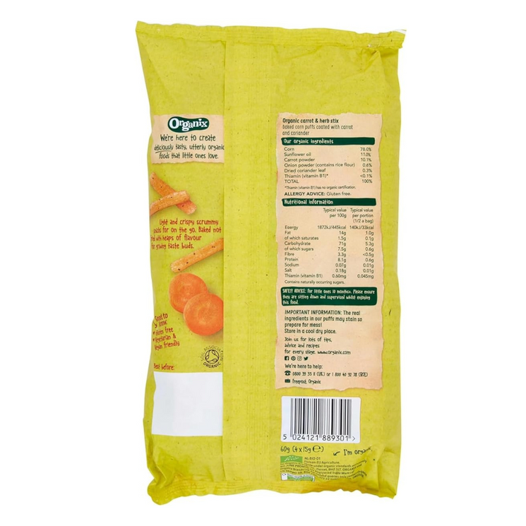 Made with organic corn, carrot and sunflower oil