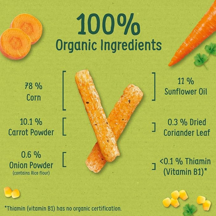 These deliciously crisp Carrot Stix are a parent-friendly pick for healthy snacking. With simple organic ingredients and just the right size for tiny hands, they’re ideal for supporting baby-led weaning or toddler nibbling.