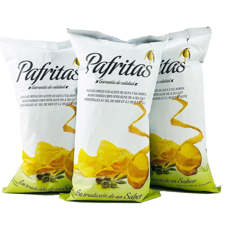 Pafritas ‘Sal Marina’ Spanish Sea Salt Crisps are a celebration of simple ingredients and traditional craftsmanship. Made from sliced potatoes and fried in high quality Spanish virgin olive oil, these crisps develop a beautifully crisp texture and a rich, natural flavour. A light touch of sea salt enhances the taste without overpowering the delicate character of the potatoes. The olive oil used in Pafritas comes from Arbequina olive groves in Rioja, produced by Kel Grupo using modern extraction techniques and environmentally mindful practices. The result is a crisp that is fresh, stable and full of authentic flavour, perfect for enjoying on its own or alongside tapas and sharing platters.