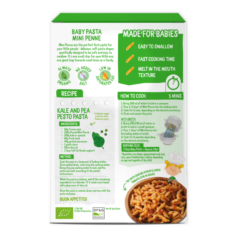Baby-sized organic penne pasta, perfect for weaning