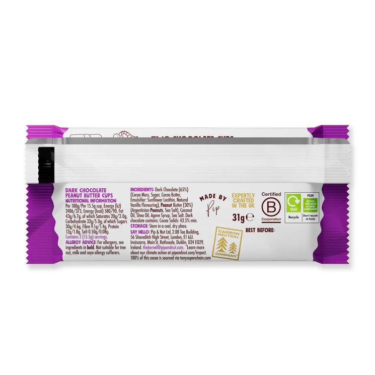 Pip & Nut use traceable cocoa through Tony’s Open Chain and high-oleic Argentinian peanuts for exceptional flavour and ethical integrity. With no palm oil, artificial additives or unnecessary ingredients, these cups align perfectly with WellEasy values: better ingredients, responsible sourcing and naturally delicious indulgence.
