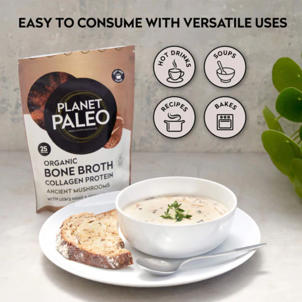 Planet Paleo Organic Bone Broth Collagen Protein - Ancient Mushrooms 450g