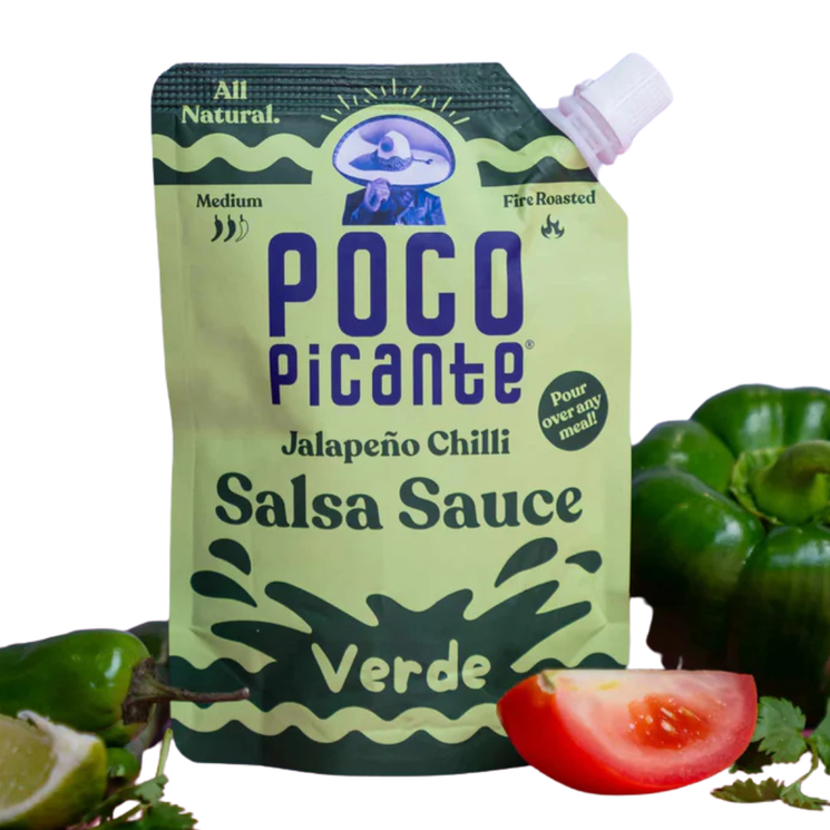 Poco Picante Jalapeño Chilli Verde Salsa Sauce is inspired by the vibrant food culture of Mexico City and Puebla. Made from fire-roasted tomatoes, green peppers and jalapeño chillies, it delivers a fresh, citrusy brightness balanced with gentle heat and aromatic spices. Blended to a smooth, pourable consistency, this salsa is designed for everyday use. Drizzle over eggs, spoon onto tacos, or use as a marinade for chicken, pork or beef to bring a lively kick to your cooking.
