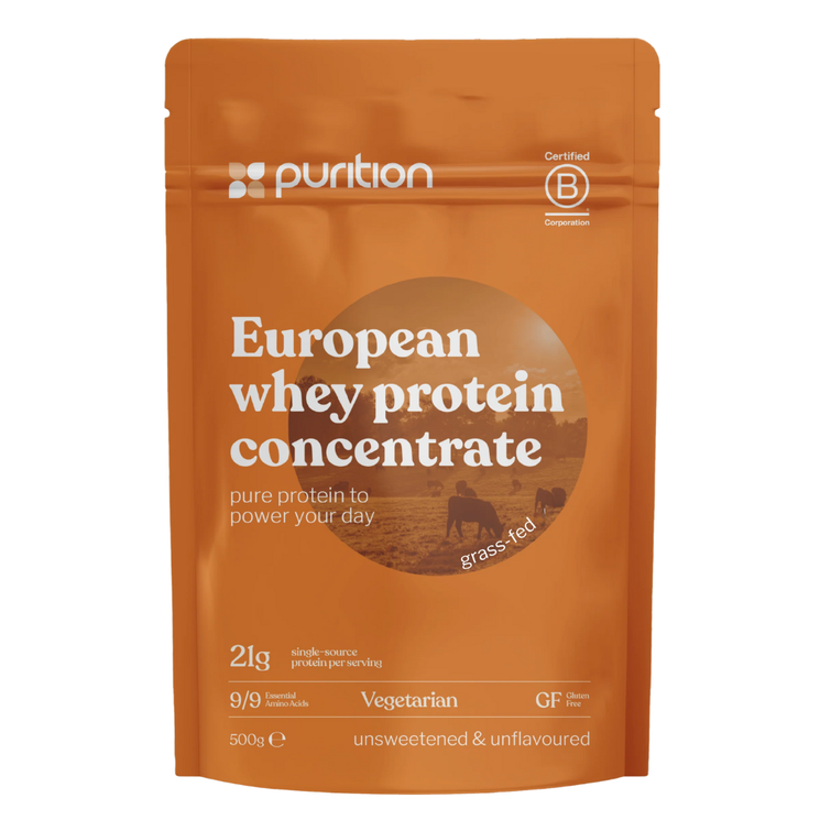 Purition Whey Protein Concentrate is a simple, clean and highly bioavailable protein source made from European milk from grass-fed cows. This twice filtered whey retains a little more natural milk fat and lactose than whey isolate, providing a creamier texture and softer flavour. With 82% protein content and all essential amino acids, it supports muscle repair, training goals and everyday nourishment.
