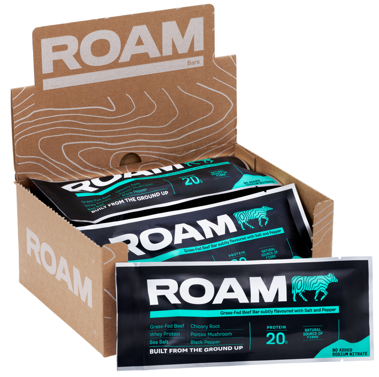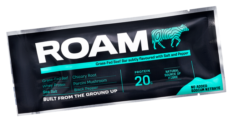 Subtly flavoured with salt, pepper and porcini mushroom. Our original grass-fed beef bar is gently air-dried for 12 hours, making it the ULTIMATE, savoury high protein snack.