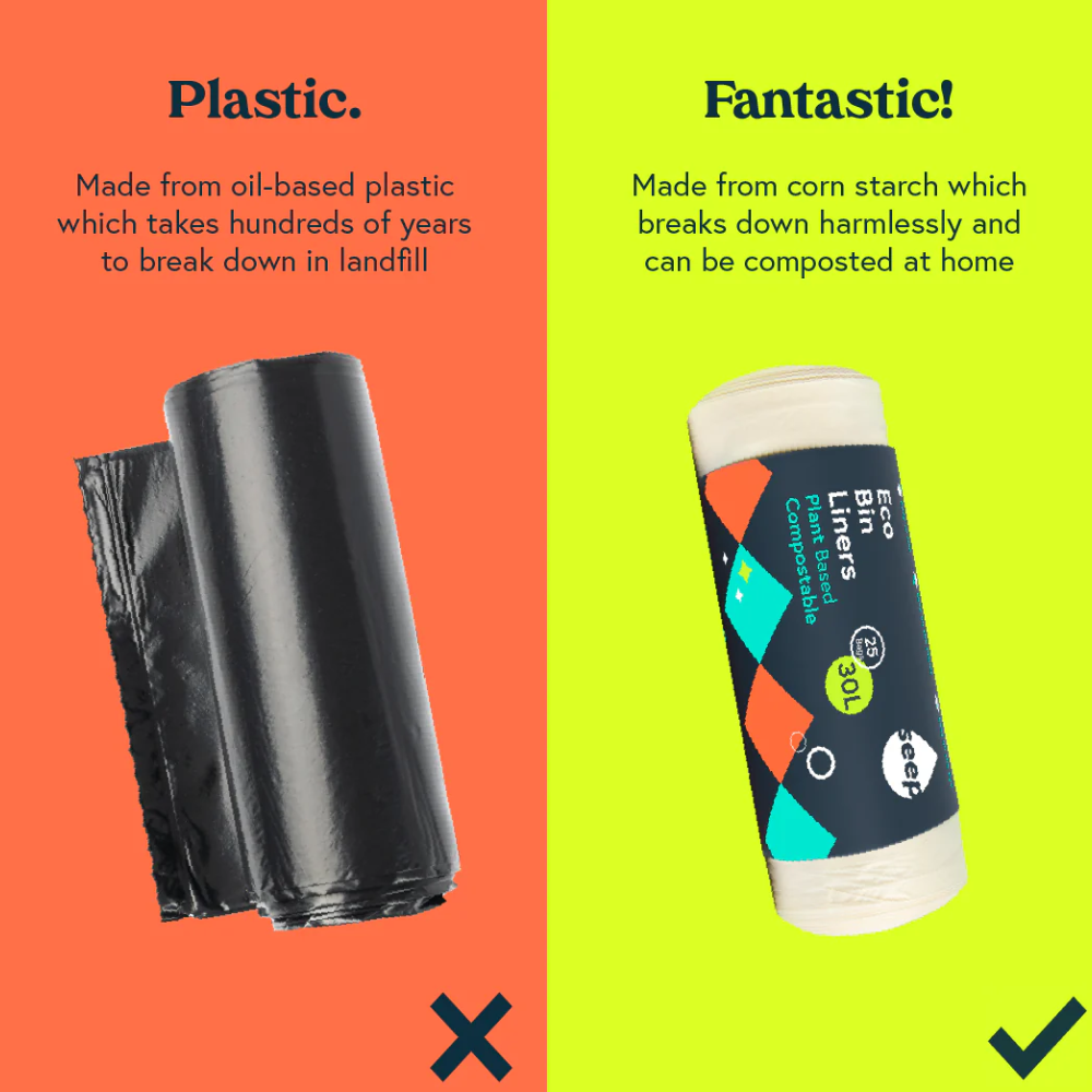 Crafted from fully compostable, plant based materials and produced using renewable energy, these liners embody Seep’s commitment to reducing waste and plastic pollution. Their certified compostability, reliable leak resistance and low impact sourcing make them a smart, sustainable upgrade for everyday rubbish disposal.
