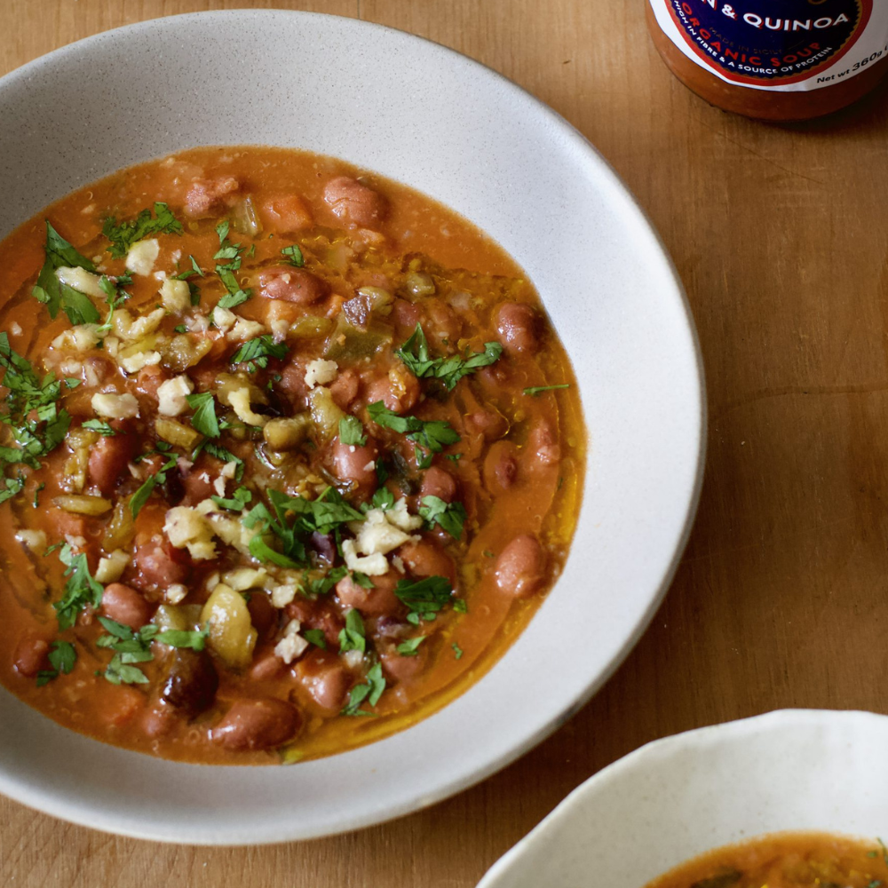 Pour into a saucepan and heat gently until piping hot. Enjoy on its own, or use as a base for a traditional pasta fagioli dish.