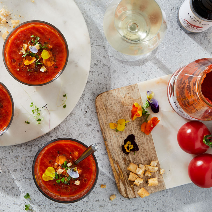 Smooth tomato purée with basil and sea salt for natural balance