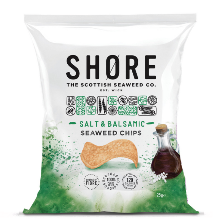 SHORE’s Salt & Balsamic Seaweed Chips offer a smarter way to snack. With a satisfying crunch and a punch of rich balsamic tang, they’re crafted from a base of quinoa, yellow pea, wholegrain maize and sustainably harvested seaweed from Scottish shores.