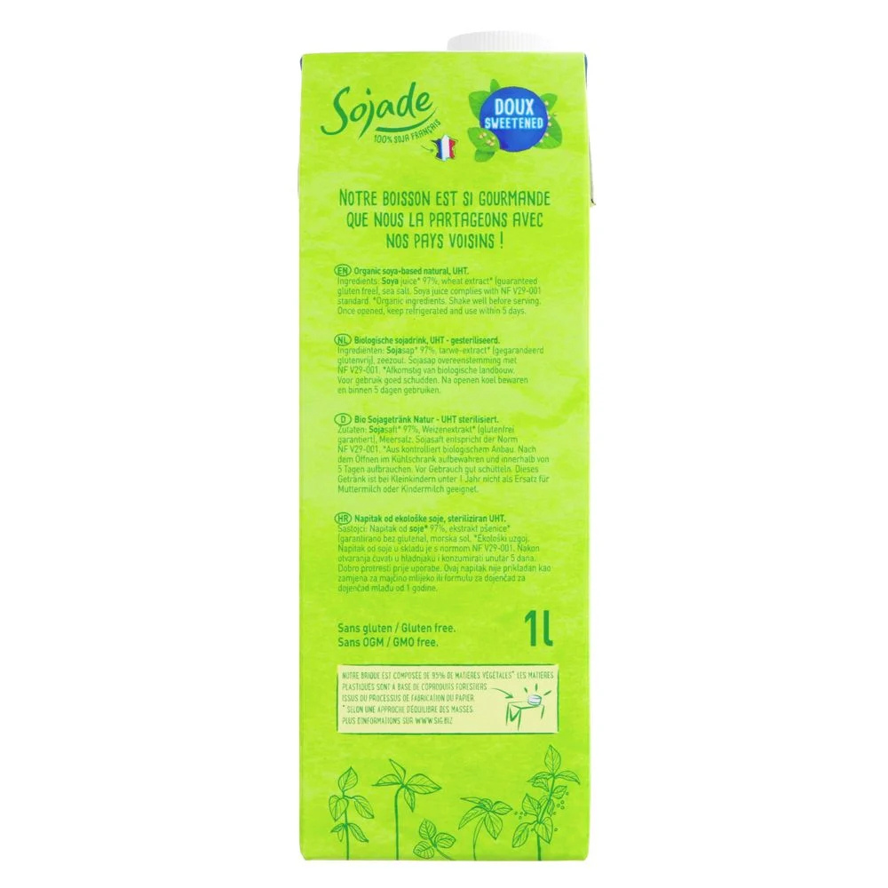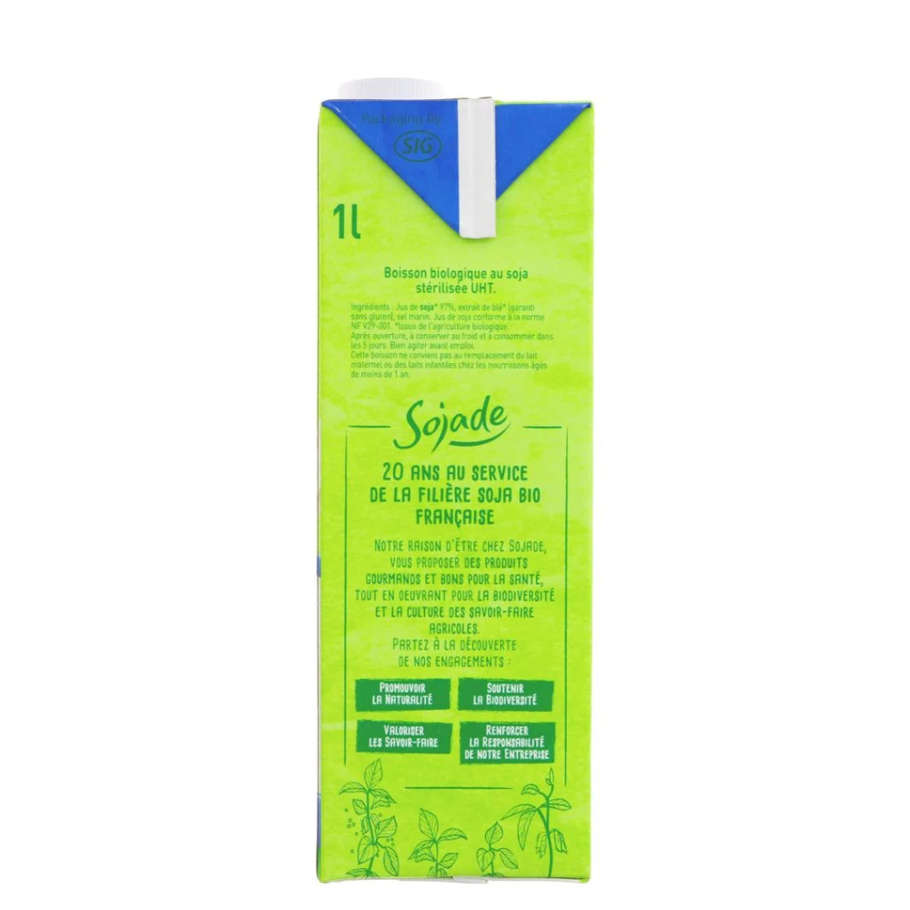 Sojade Organic Soya Milk Sweetened 1L