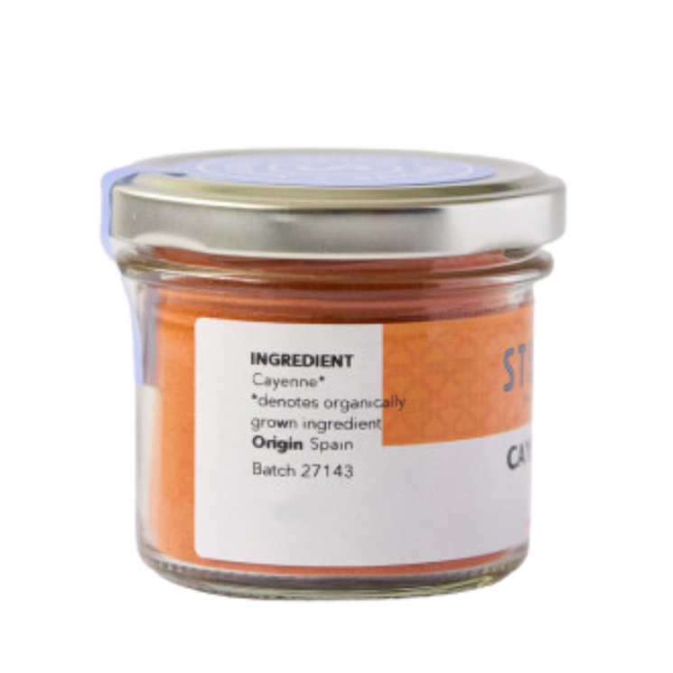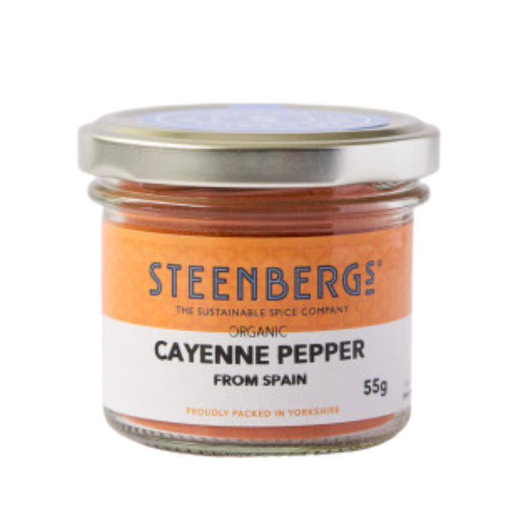 Steenbergs Organic Cayenne Pepper delivers a bold, predictable heat with subtle flavour-enhancing qualities that lift savoury dishes without overpowering them. Made from a single organic chilli strain, it offers clean, bright heat and a touch of natural sweetness typical of high quality cayenne. Whether sprinkled into soups, added to devilled eggs or used to bring depth to curries and stews, it brings a fiery yet refined character to everyday cooking.