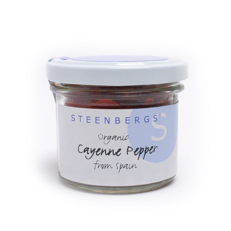 Steenbergs Organic Cayenne Pepper is a pure chilli product with a consistent chilli heat in the range of 38,000 - 50,000 Scoville Heat Units. Steenbergs Organic Cayenne Pepper has the power to make any dish nice and hot, but it also has subtle flavour-enhancing quality. For a zesty change, add Steenbergs organic cayenne to replace paprika on devilled eggs or potato salad. Steenbergs organic cayenne pepper is grown in India, Spain or Uganda.