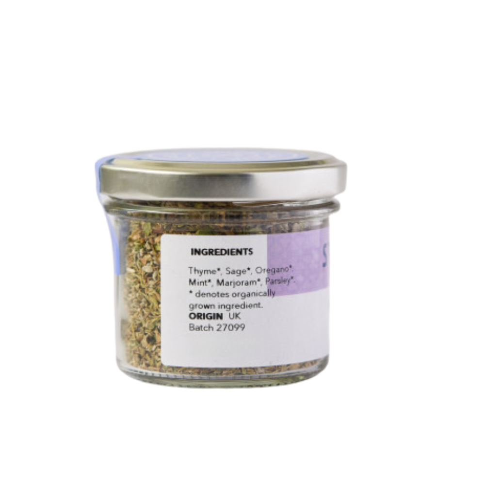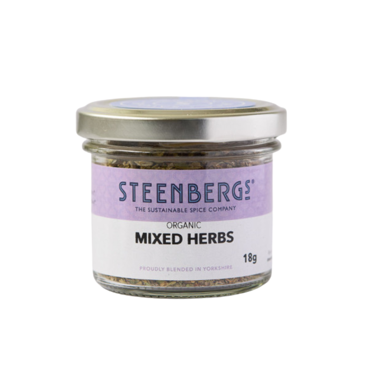 Steenbergs Organic Mixed Herbs is a timeless kitchen staple blended from a selection of organic herbs chosen for their warm, savoury and gently refreshing flavour. Based on a family recipe, it brings together aromatic thyme, earthy sage, robust oregano and sweet marjoram, lifted with the fresh brightness of spearmint and the soft, grassy notes of parsley.