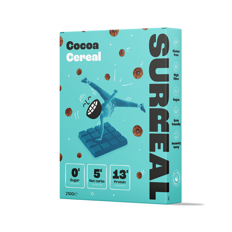 Surreal Keto Low Carb Cocoa Cereal is a delicious and healthy breakfast option for those following a ketogenic or low-carb diet. Made from a blend of nuts, seeds, and cocoa, this cereal is high in healthy fats, protein, and fiber, and low in carbs, making it a great choice for those looking to maintain ketosis. It's also gluten-free, grain-free, and vegan, making it a great option for those with dietary restrictions. Try Surreal Keto Low Carb Cocoa Cereal with your favorite milk or as a topping for yogurt or oatmeal for a satisfying and nourishing start to your day.