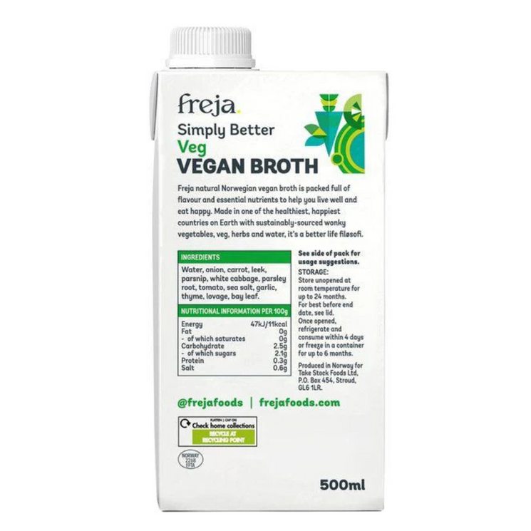 Freja Vegan Broth is crafted from a blend of slow simmered vegetables and herbs to deliver a wholesome, nourishing base for your cooking. Whether used as a foundation for soups and curries or enjoyed as a comforting hot drink, it’s the perfect way to bring depth and flavour to everyday meals.