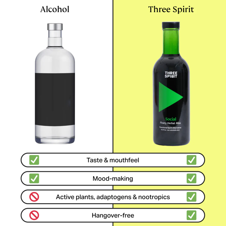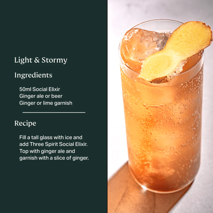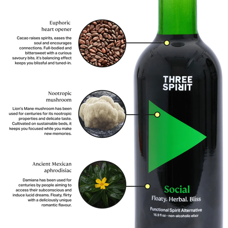 Three Spirit Social is a dark, herbal alcohol free elixir created as a mood-lifting alternative to alcoholic drinks. Crafted with a carefully balanced blend of botanical extracts, it delivers a rich, bittersweet profile with a curious savoury bite designed to be sipped and shared. With its complex flavour and thoughtfully chosen plants, Social brings a sense of occasion to gatherings without alcohol. It’s a modern, mindful way to enjoy connection and conversation.