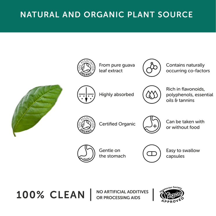 We love that this zinc is sourced directly from organic guava offering a clean, ethical alternative to synthetic forms of the mineral, all in an easily absorbed whole-food form.