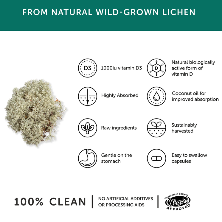 Bioactive plant based Vitamin D3 sourced from wild grown lichen