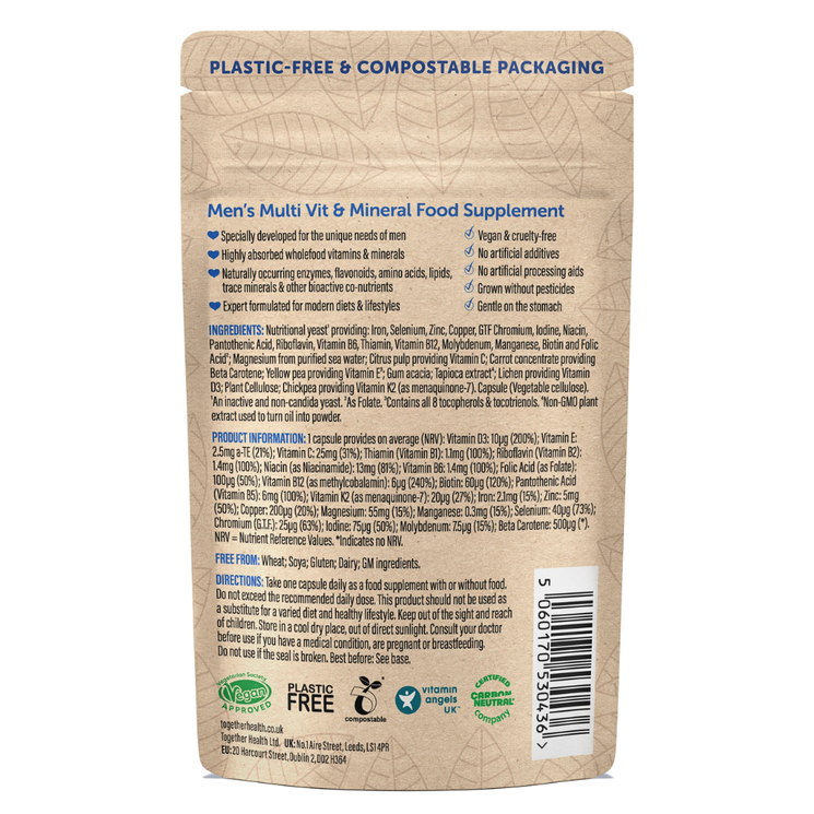 Made using naturally effective, minimally processed ingredients, this formulation delivers clean, bioavailable nutrients your body can recognise. With whole food complexes and plant based sources, it provides targeted nutritional support for men in a simple, one a day capsule.