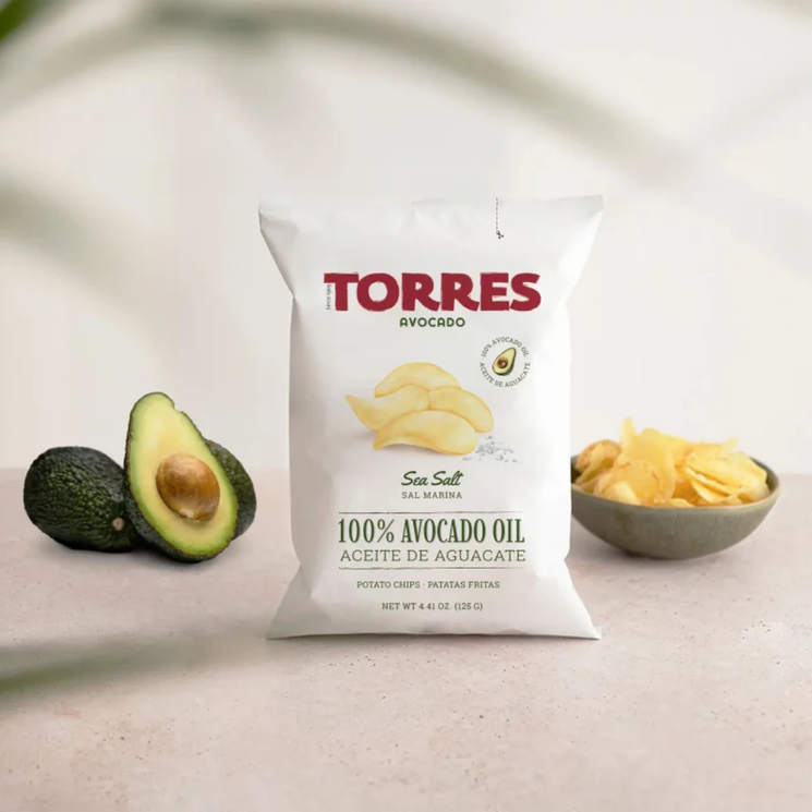 Torres Avocado Oil Sea Salt Crisps are made from carefully selected potatoes and cooked in 39% avocado oil for a crisp, golden finish. Lightly seasoned with Mediterranean sea salt, they offer a clean and balanced savoury flavour. With a delicate crunch and simple ingredients, these crisps are ideal for snacking at home or on the go.