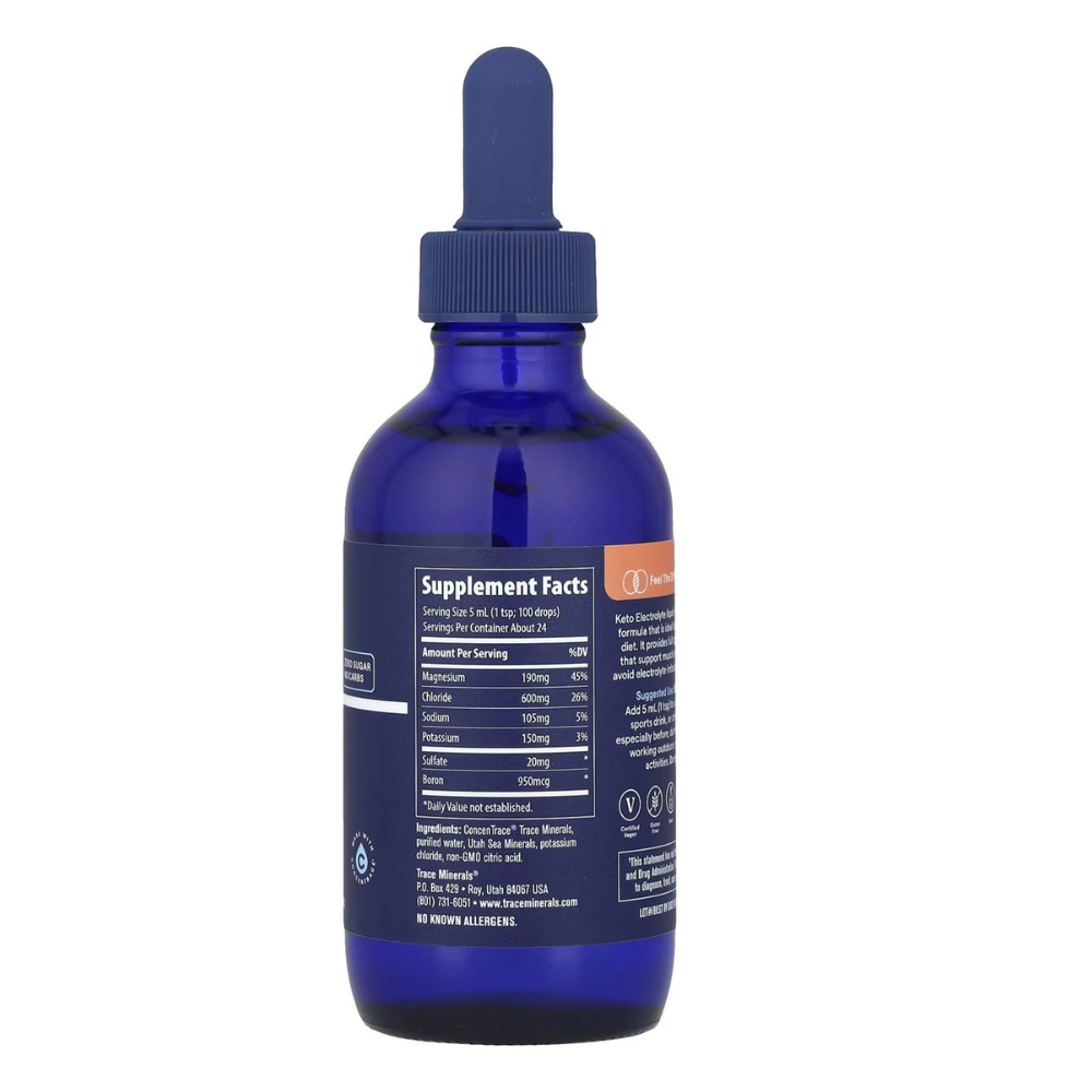 Trace Minerals Keto Electrolyte Drops offer a clean, concentrated source of essential electrolytes to help replace minerals commonly depleted on a ketogenic diet. The ionic liquid format allows the body to absorb and utilise the minerals quickly, supporting hydration, fluid balance, energy metabolism and muscle function. This formula is crafted to help reduce cramping, fatigue and symptoms associated with electrolyte imbalance.