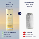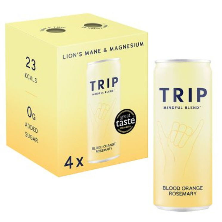 TRIP’s Blood Orange & Rosemary Mindful Blends bring a bright, botanical twist to your daily routine. This sparkling functional drink blends tangy blood orange and lime juices with fragrant rosemary, chamomile, and lemon balm for a balanced, restorative flavour. Infused with adaptogenic ingredients like lion’s mane and ashwagandha, plus L-theanine for calm clarity, it’s designed to support focus and ease without compromising on taste.