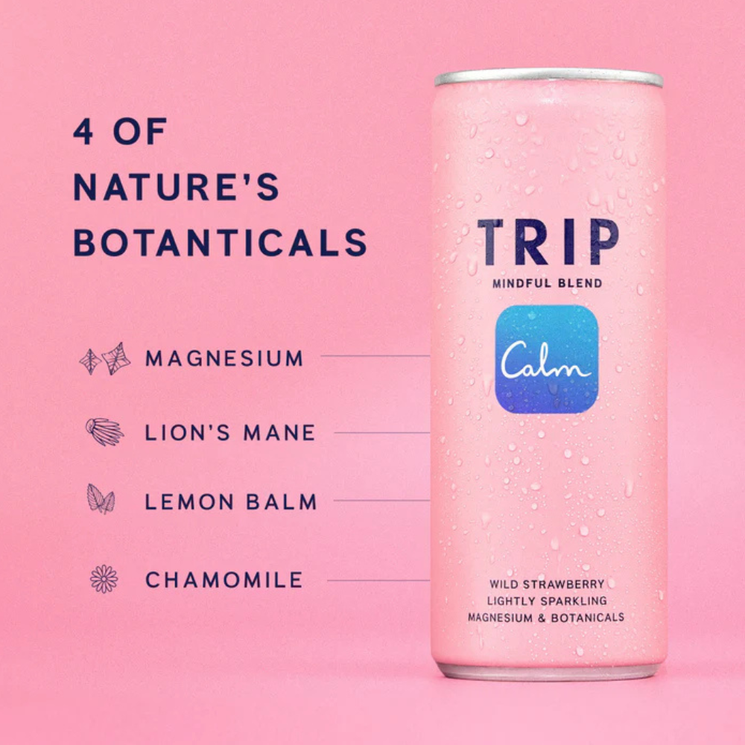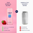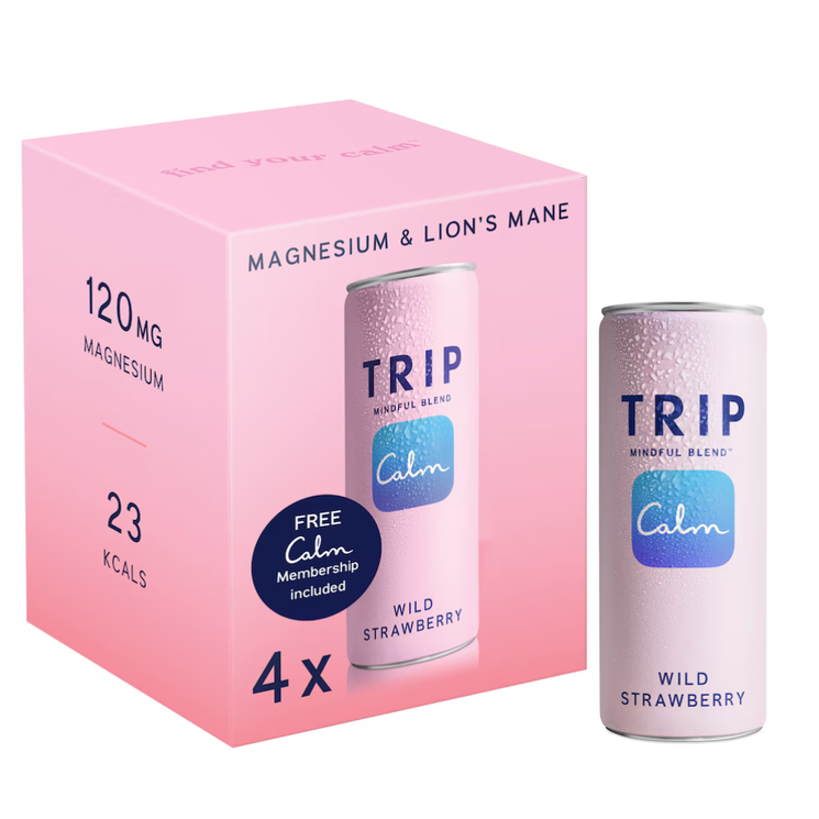 TRIP Wild Strawberry Mindful Blend is a refreshing, lightly sparkling drink designed to help you reset and recharge. Crafted from a fusion of fruit juices and botanical extracts including lion’s mane, lemon balm, and chamomile, this blend supports mental clarity and calm throughout the day. Enriched with magnesium, which contributes to normal psychological function, it’s the perfect alternative to sugary drinks when you want something refreshing yet functional.