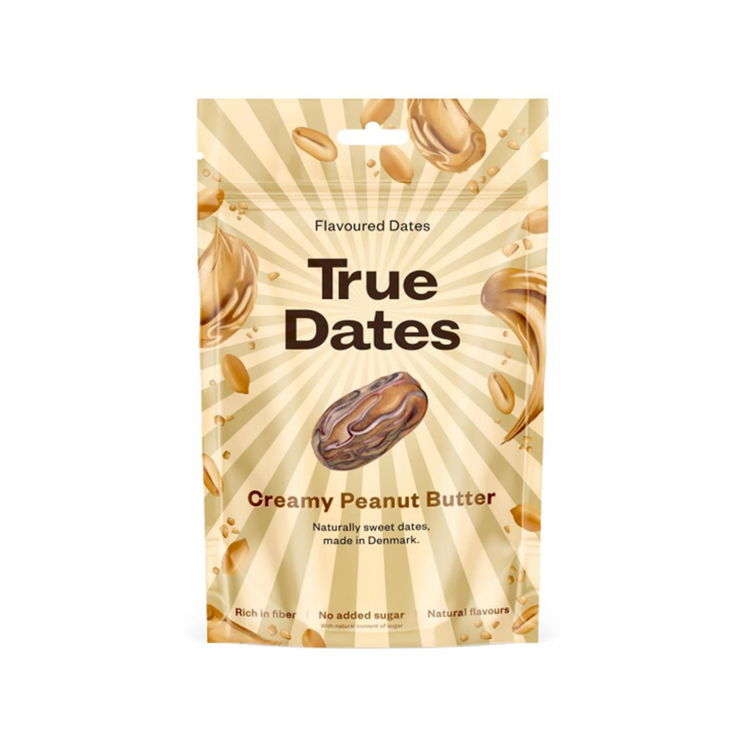 Ingredients: Dates (non-EU) (86%), peanut butter (7%), chicory root fiber, natural flavouring. Store dry and cool. May contain pits or pit fragments. May contain traces of almonds.