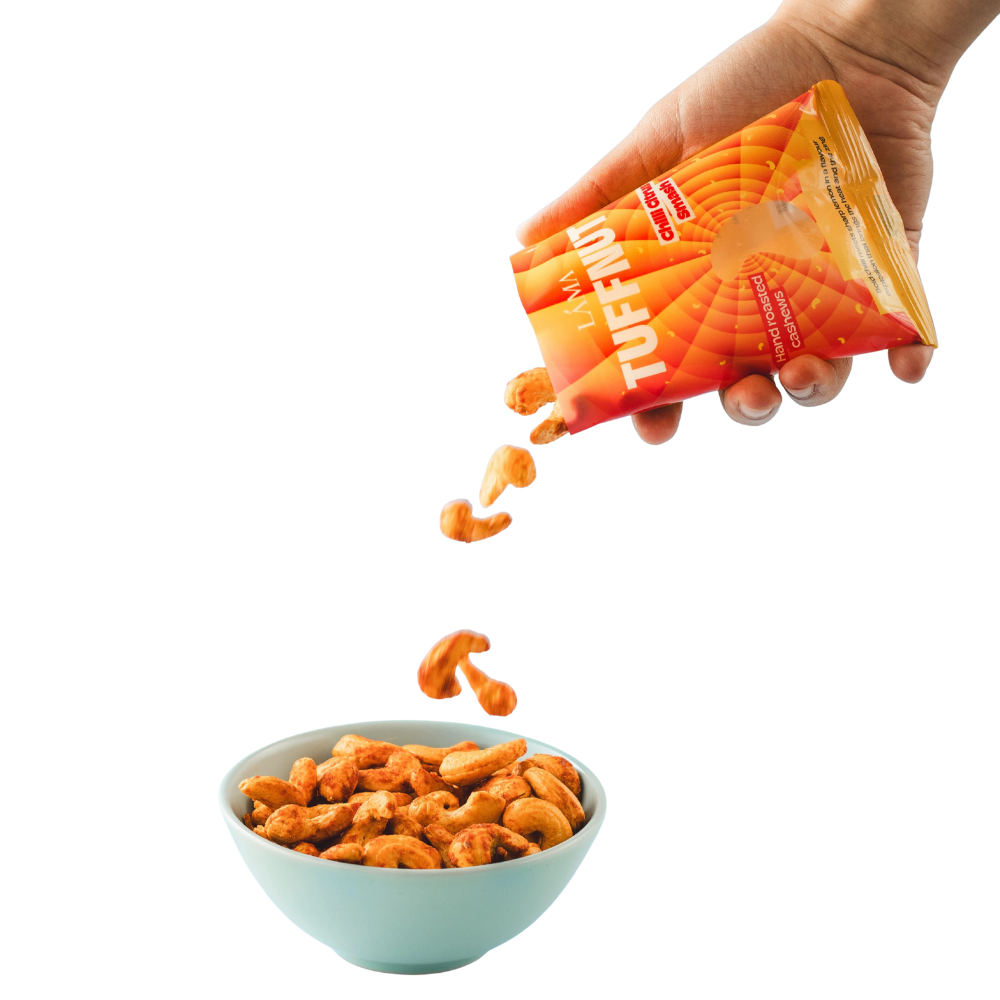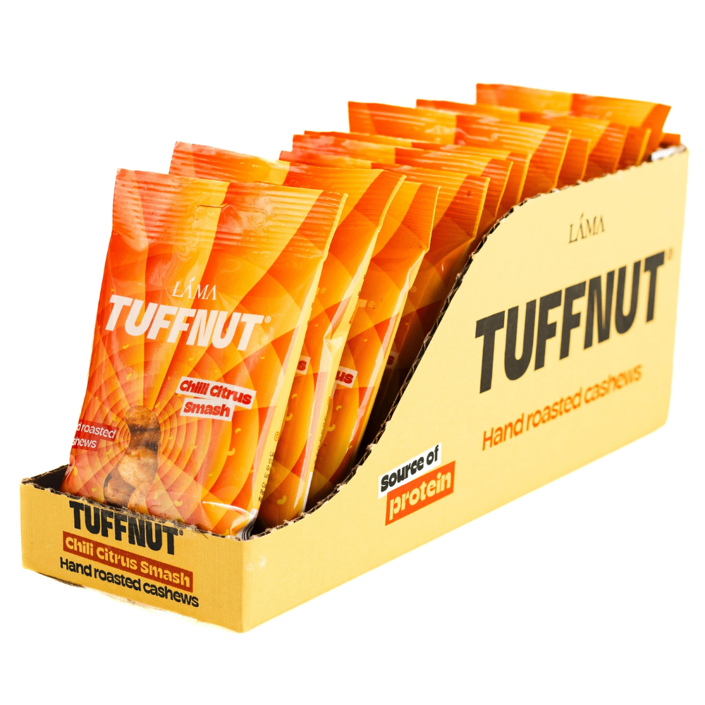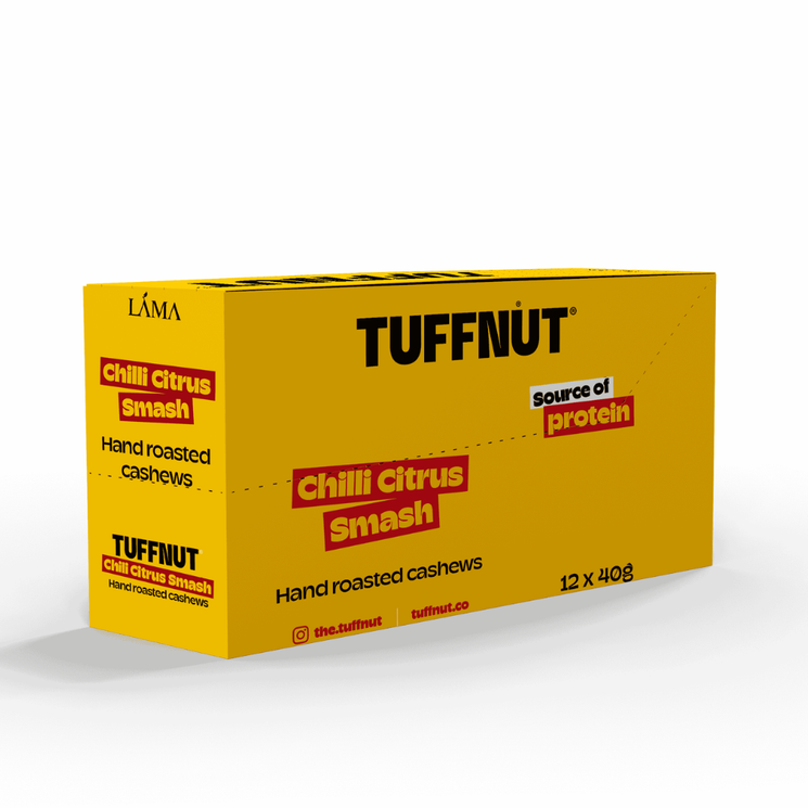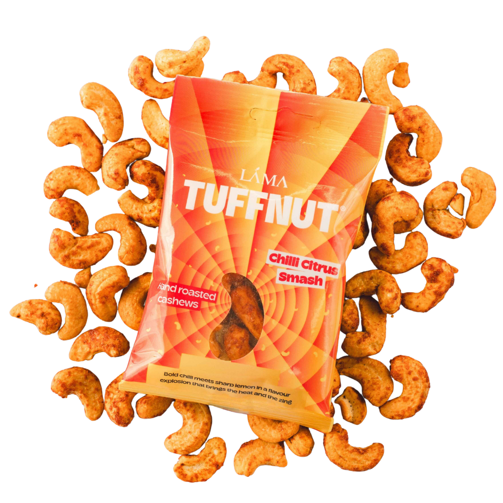 TuffNut Chilli Citrus Smash Hand Roasted Cashews deliver the ultimate flavour hit fiery, zesty, and satisfying. Each cashew is hand roasted for an extra crunch and evenly coated in a punchy blend of chilli and citrus spices that bring both heat and brightness in every bite.