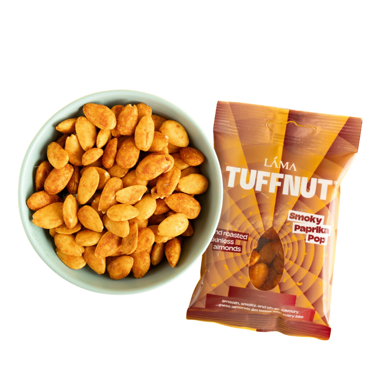 Smooth, smoky, and utterly savoury, TuffNut Smoky Paprika Pop Skinless Almonds bring a modern twist to classic roasted nuts. Each almond is carefully roasted without its skin for a lighter texture and coated in a rich paprika blend that builds flavour with every bite.
