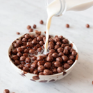 Crunchy organic cocoa cereal balls made with plant based protein