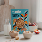 Turtle Puffed Spelt & Honey is a delightfully light and simple breakfast cereal made with just two ingredients: 83% organic puffed spelt and 17% organic honey. This cereal is naturally sweet, gently toasted, and offers a satisfyingly crisp bite perfect for children and adults alike.