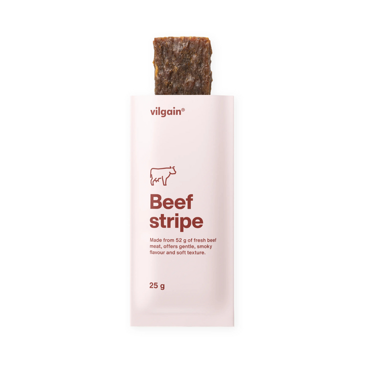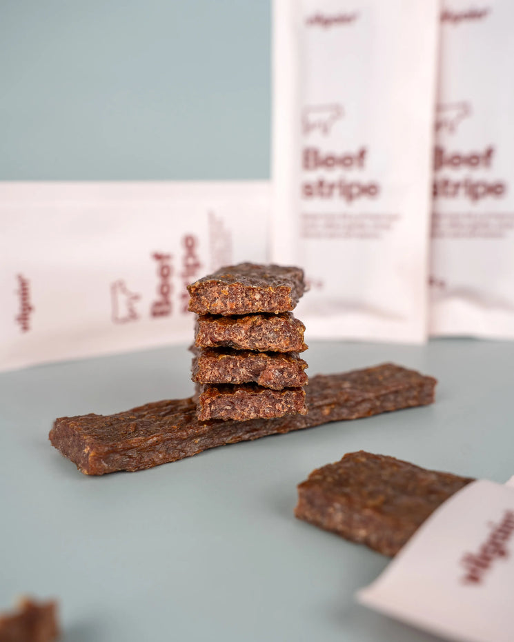 Compared to conventional jerky, Vilgain Stripe is softer, juicier and easier to chew.