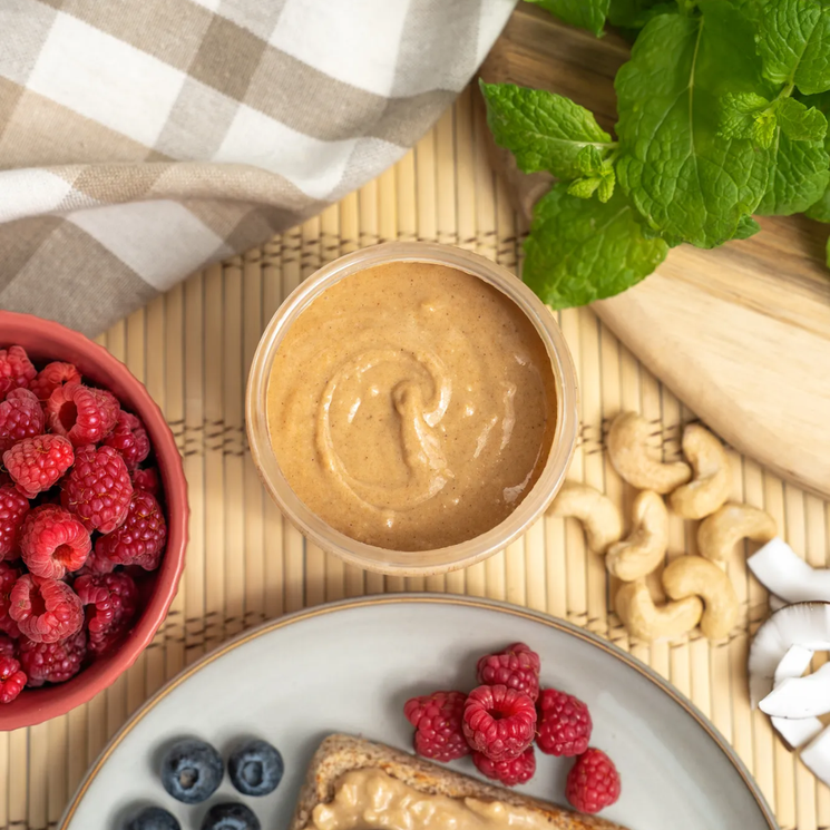 Smooth, naturally sweet nut butter made from cashews, coconut and vanilla