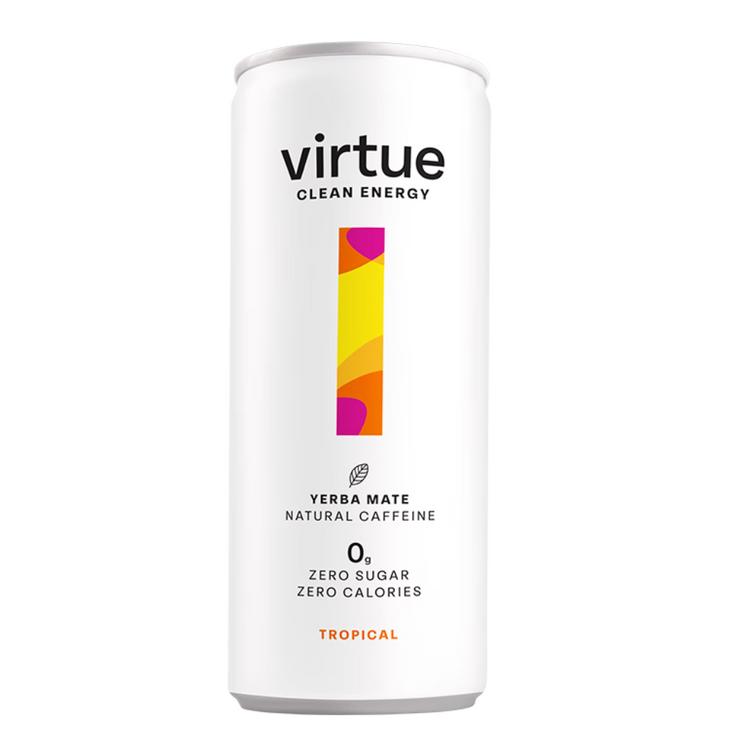 Virtue Clean Energy Tropical is a clean label energy drink powered by organic yerba mate. Each 250ml can delivers 80mg of natural caffeine, providing the same boost as a cup of coffee without the sugar crash. Yerba mate is rich in antioxidants and naturally contains vitamins and minerals, making this drink a healthier alternative to conventional energy drinks.