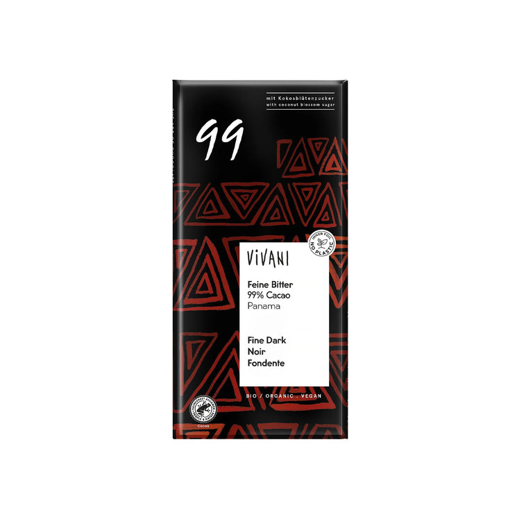 Dark chocolate with 99% cocoa. Made from mild Panama cocoa and only a hint of coconut blossom sugar. Extra thin bar for an even more intensive cocoa experience.