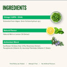 Ingredients: Microalgal oils (from schizochytrium sp.), cold pressed sunflower oil, antioxidants (rosemary extract, tocopherols, ascorbyl), natural citrus extracts