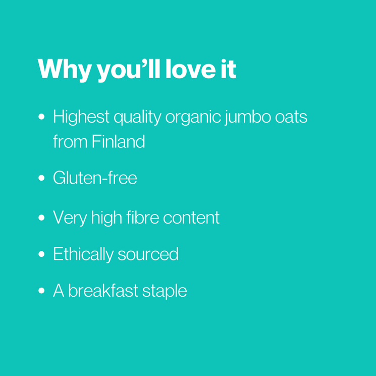 Our Organic Gluten Free Jumbo Oats are grown on pristine Finnish farms and batch-tested to ensure they’re completely free from gluten contamination. With their large flakes and mild nutty taste, they’re perfect for creamy porridge, homemade granola or thickening smoothies. These oats are a fantastic source of complex carbohydrates, fibre and plant-based protein fuelling your day while supporting digestion and balanced energy levels.