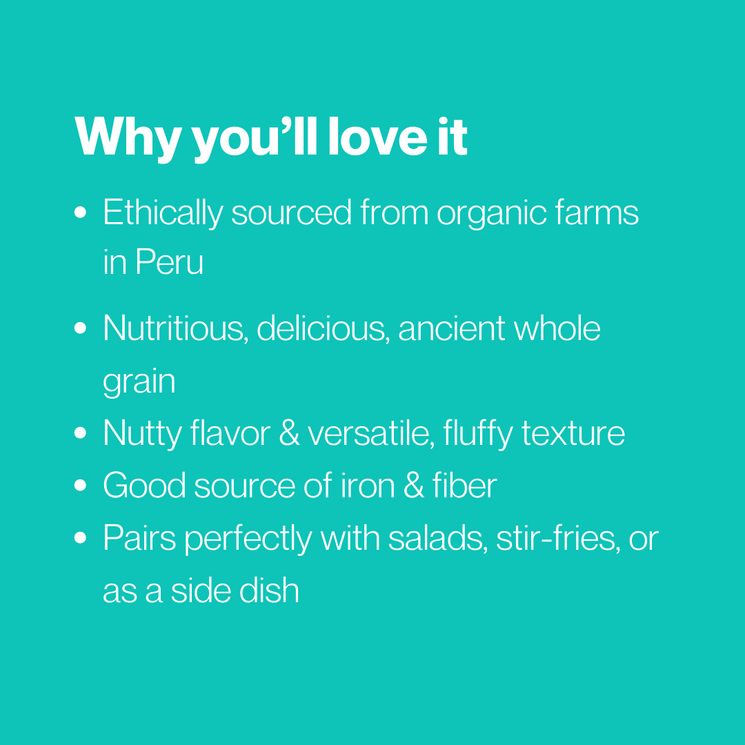 WellEasy Organic Quinoa is a kitchen staple that delivers big on nutrition. Grown on organic farms in Peru, our quinoa is carefully washed and pre-rinsed, making it quick and easy to cook. It has a light, fluffy texture and subtle nutty flavour ideal for everything from vibrant grain bowls and veggie burgers to simple sides and healthy breakfasts.