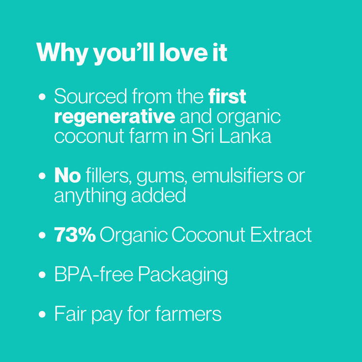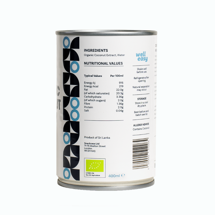 Experience the difference with WellEasy's new regenerative organic coconut cream. Made from 100% organic coconuts grown on the first regenerative farm in Sri Lanka, this cream is free of gums, fillers, preservatives, and added sugar. The tin is also BPA-free. With no artificial ingredients, you can indulge guilt-free and enrich any dish sweet or savoury with this new cupboard staple.