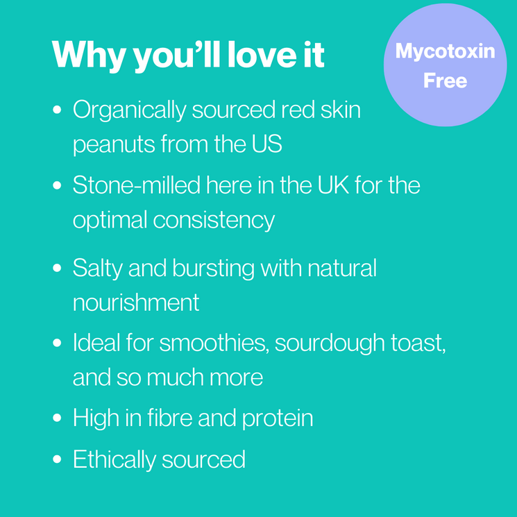 Enjoy a delicious treat with WellEasy Smooth Organic Peanut Butter! Carefully crafted with USA-grown peanuts, this creamy spread is stone milled at low temperatures for a smoother texture, with hints of its tasty red skin still in there. It's an organic, guilt-free indulgence you can feel good about! All of our nut butters are tested for heavy metals and mycotoxins.