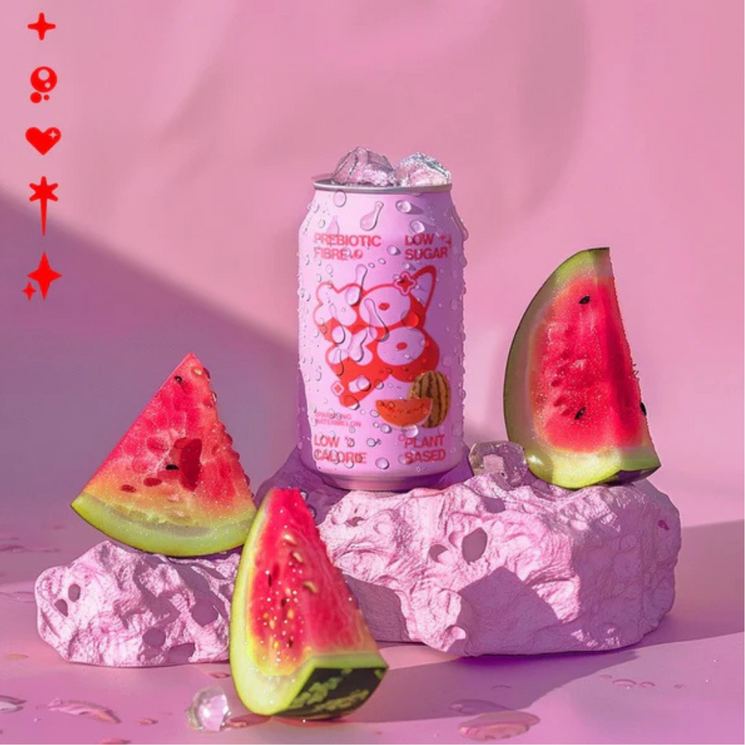 This vibrant, sparkling soda brings the juicy sweetness of watermelon together with a gut-friendly boost of prebiotic fibre. Each can contains a carefully balanced mix of natural juices and plant-based fibres, including tapioca dextrin, Jerusalem artichoke, and acacia gum, to help nourish beneficial gut bacteria.