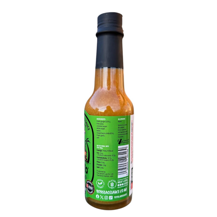 This vibrant sauce blends the warmth of fresh ginger with the heat of red and green chillies, rounded out by garlic, lime juice, and a touch of sweetness from coconut sugar. The result is a lively, versatile condiment that brings depth and spice to any dish.